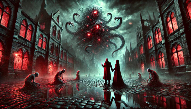 Synopsis: In a quiet town, a scholar stumbles upon a forbidden secret, awakening an ancient evil. Madness grips the town as reality distorts and sanity unravels. Survivors seek refuge, but the fabric of their world crumbles and strange creatures emerge to purge the humanity. Whispers speak of forgotten gods and a dance of madness. With their existence at stake, the survivors must confront the horrifying unknown that lurks beyond their perception. Will anybody survive, or will their world be entirely consumed by the unknown?